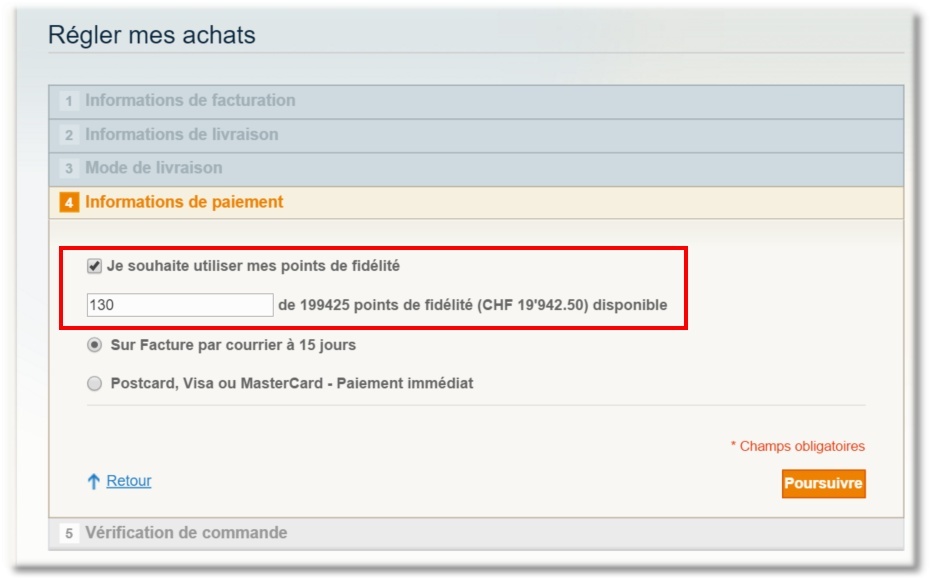 100 points = 1 CHF à déduire directement du montant total de votre commande !
